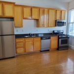 Kitchen has stove, fridge, dishwasher.